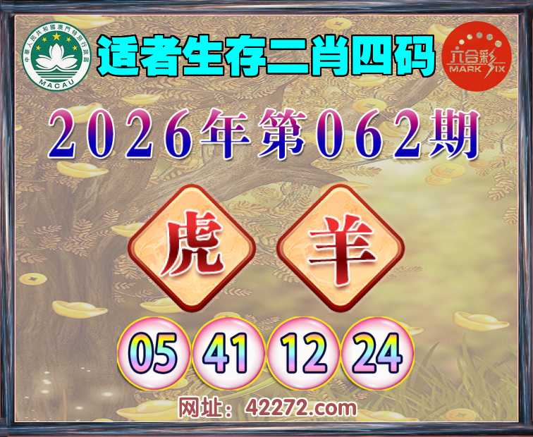 062期:『适者生存』 二肖四码【虎羊】【05.41.12.24】开:羊24准见证上榜